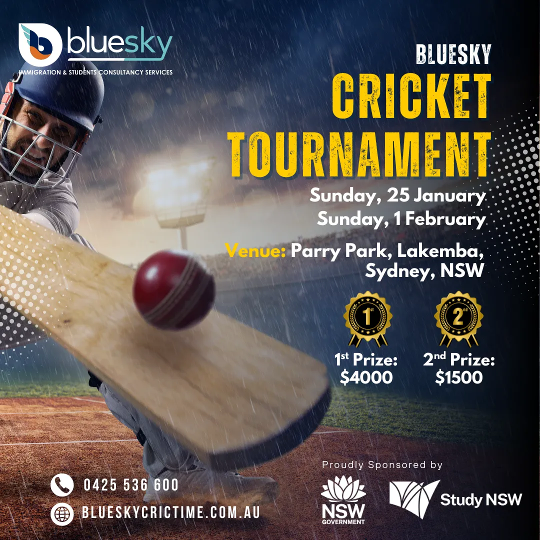 Bluesky Cricket Tournament is an initiative by Bluesky Immigration and Students Consultancy Services, reflecting our commitment to supporting students beyond academics.